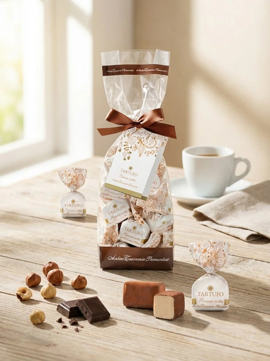 The traditional Piedmontese dessert "Panna Cotta" reinvents itself as a truffle. We’ve captured the silky, milky flavor of cooked cream and enriched it with subtle caramel accents. It’s a delicate, ancient flavor profile that appeals to the most demanding palates of all ages.